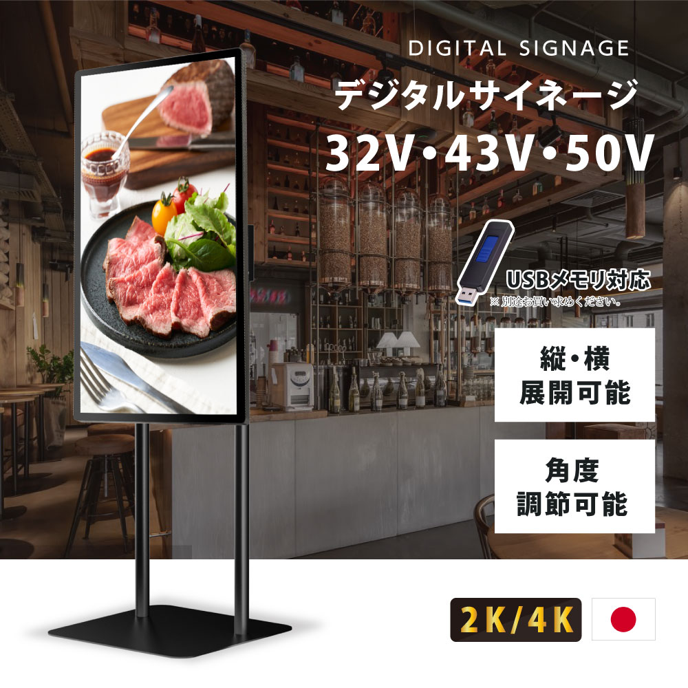 デジタルサイネージ 32/43/50インチ 垂直型スタンドセット 軽量 コンパクト 縦横自由 ディスプレイ USBメモリー 大画面 dsns-g