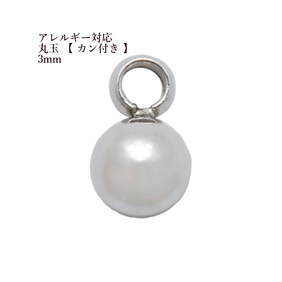 [ 10個 ]サージカルステンレス 丸玉 【 カン付き 】《 3mm 》[ 銀 シルバー ] パーツ 金属アレルギー対応 M2-05
