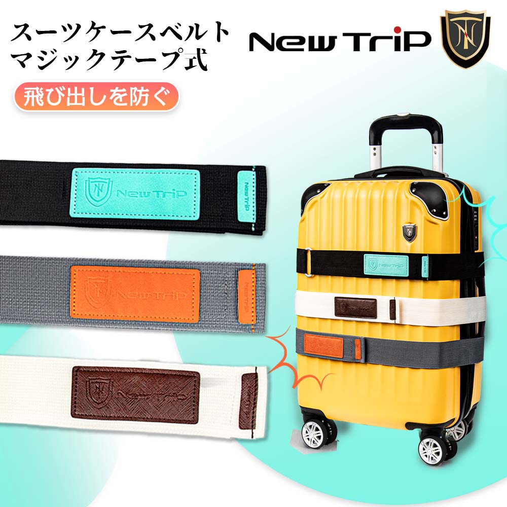 【New Trip】スーツケースベルト マジックテープ式 脱着簡単 荷物を守り 目立ち 目印にも 取り間違え防止 伸縮性のないベルト 強く引っ張る
