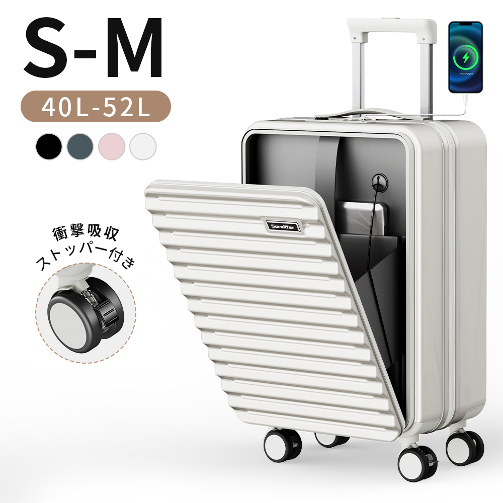 スーツケース フロントオープン 機内持ち込み 前開き カップホルダー S Mサイズ 1-3泊 ストッパー付き キャリーケース キャリーバッグ 静音 軽量 旅行 大容量