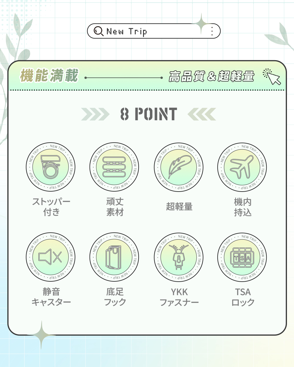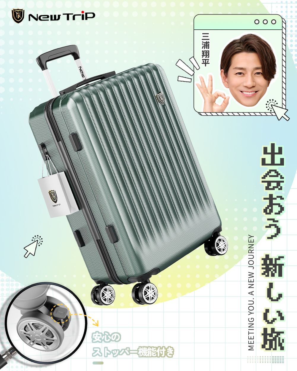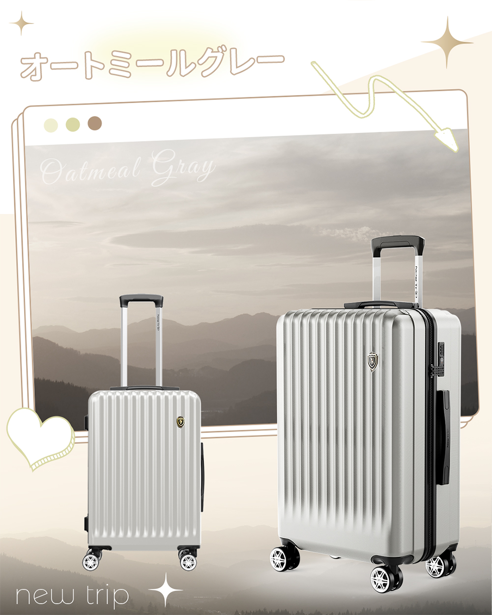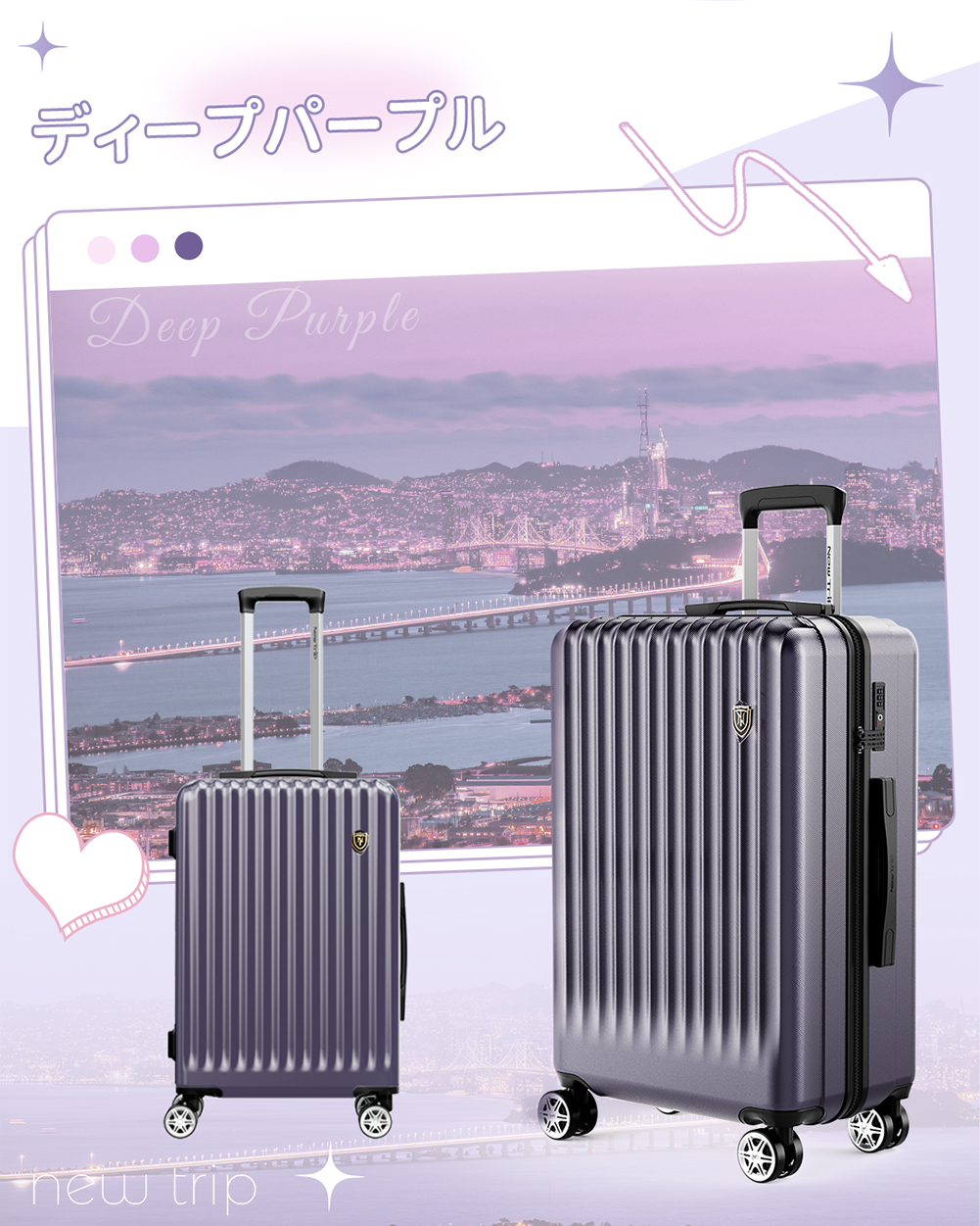 スーツケース キャリーケース 機内持ち込み ストッパー付き キャリーバッグ S M Lサイズ 2泊3日 軽量 静音 かわいい TSAロック New Trip 修学旅行 海外旅行 出張
