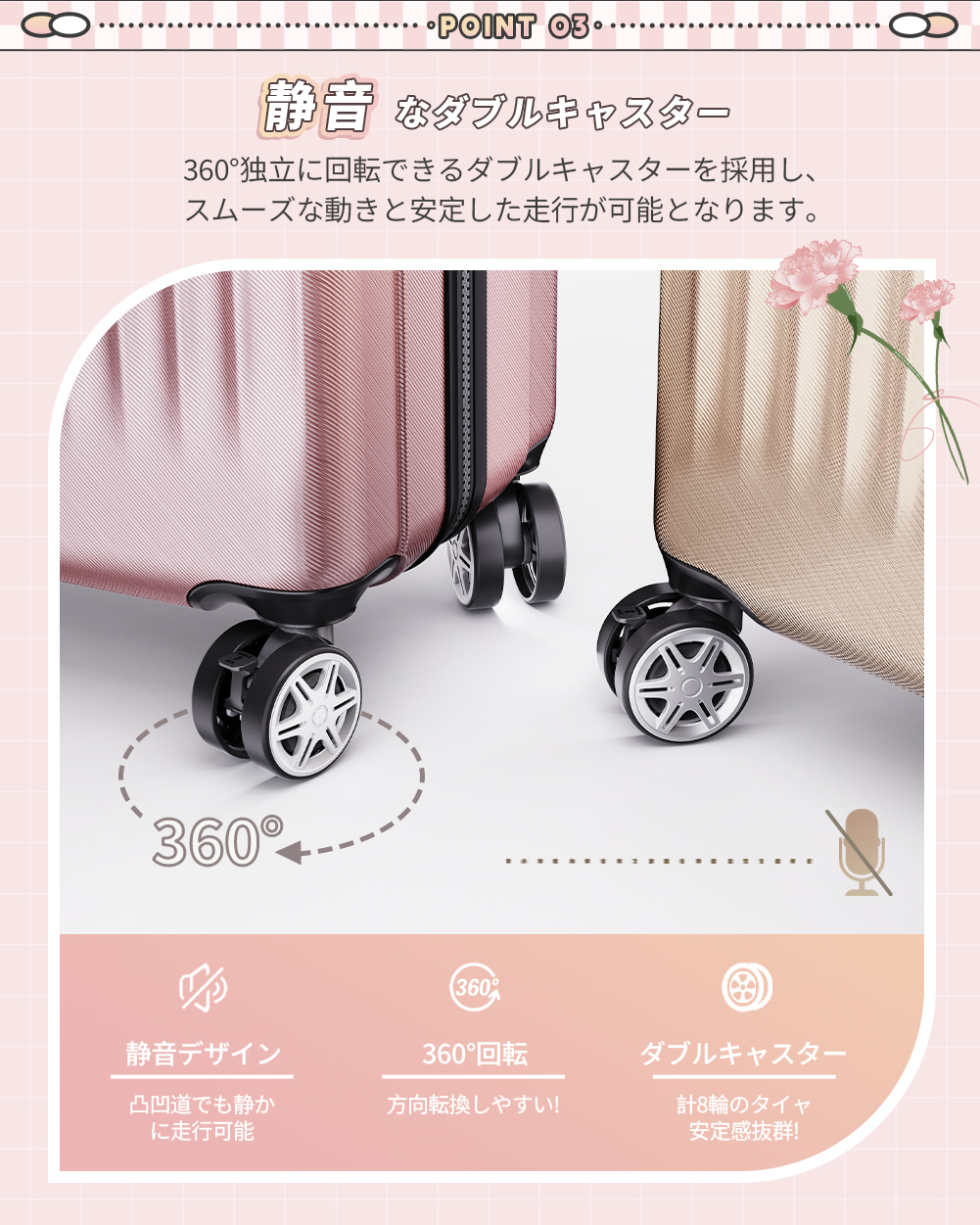 ■キャスター360度回転双輪・静音