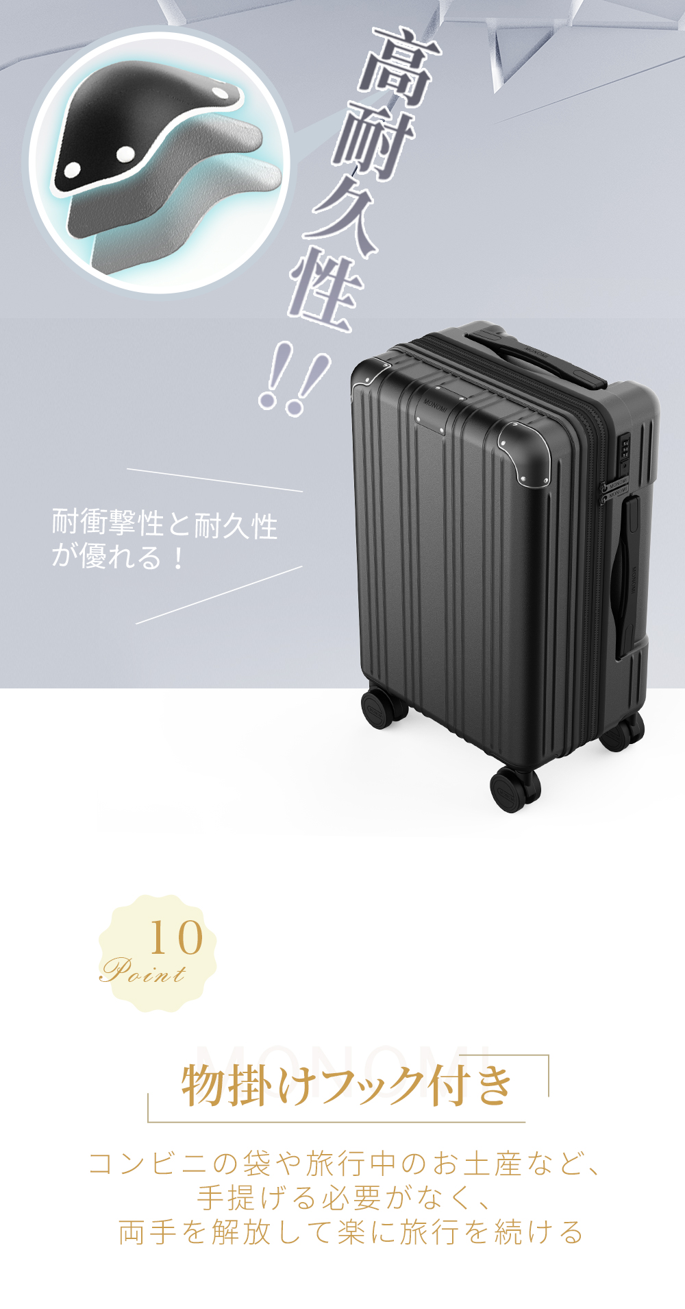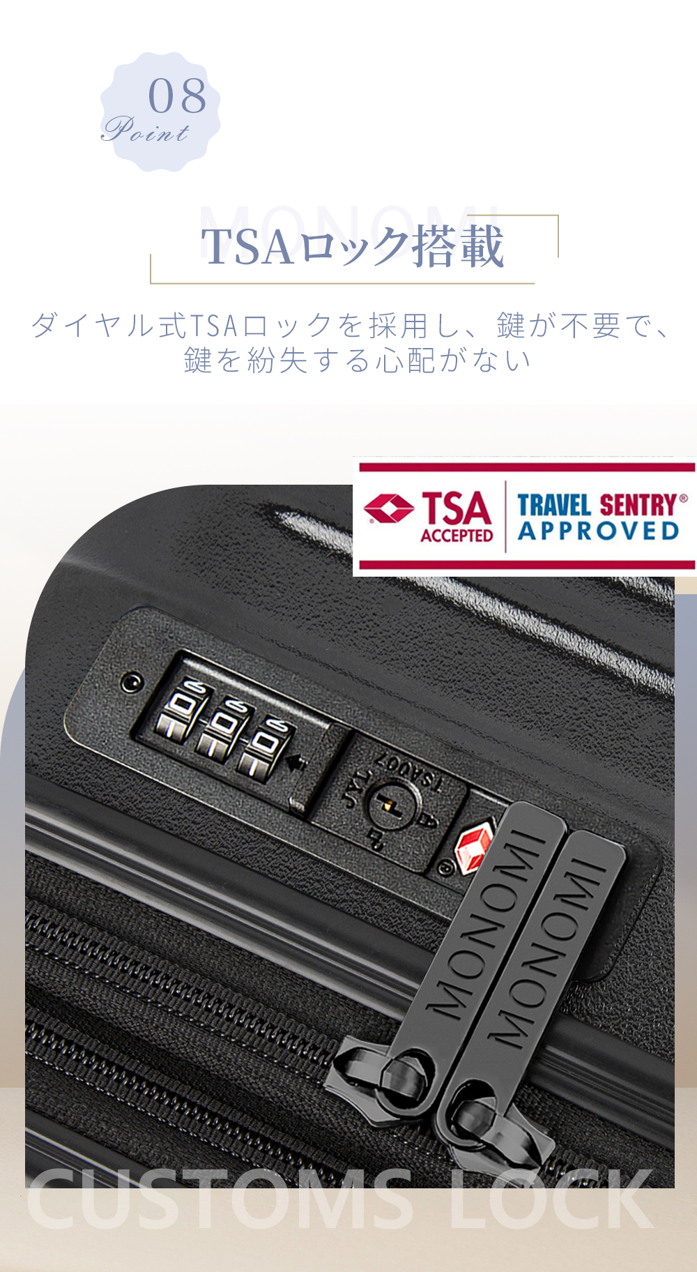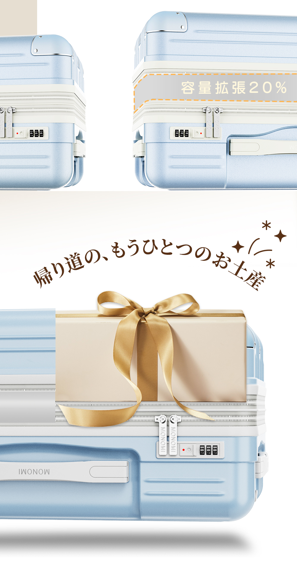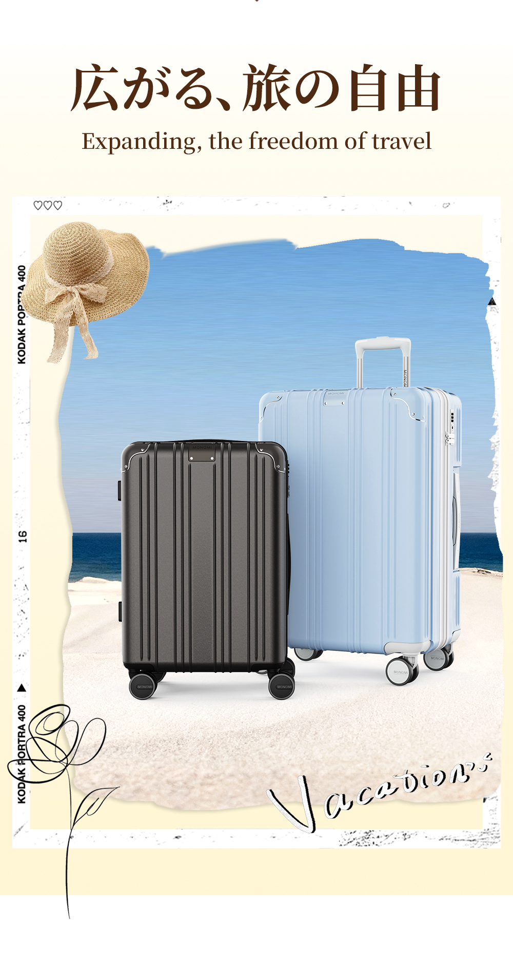 旅行に便利な『TSAロック』、安定走行の『双輪キャスター』も搭載し、拡張機能付きもっと快適な旅に