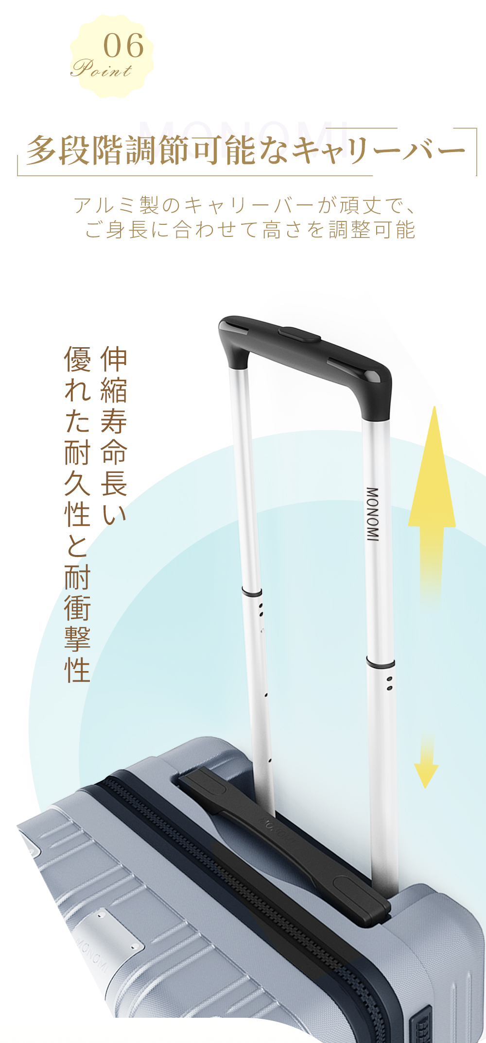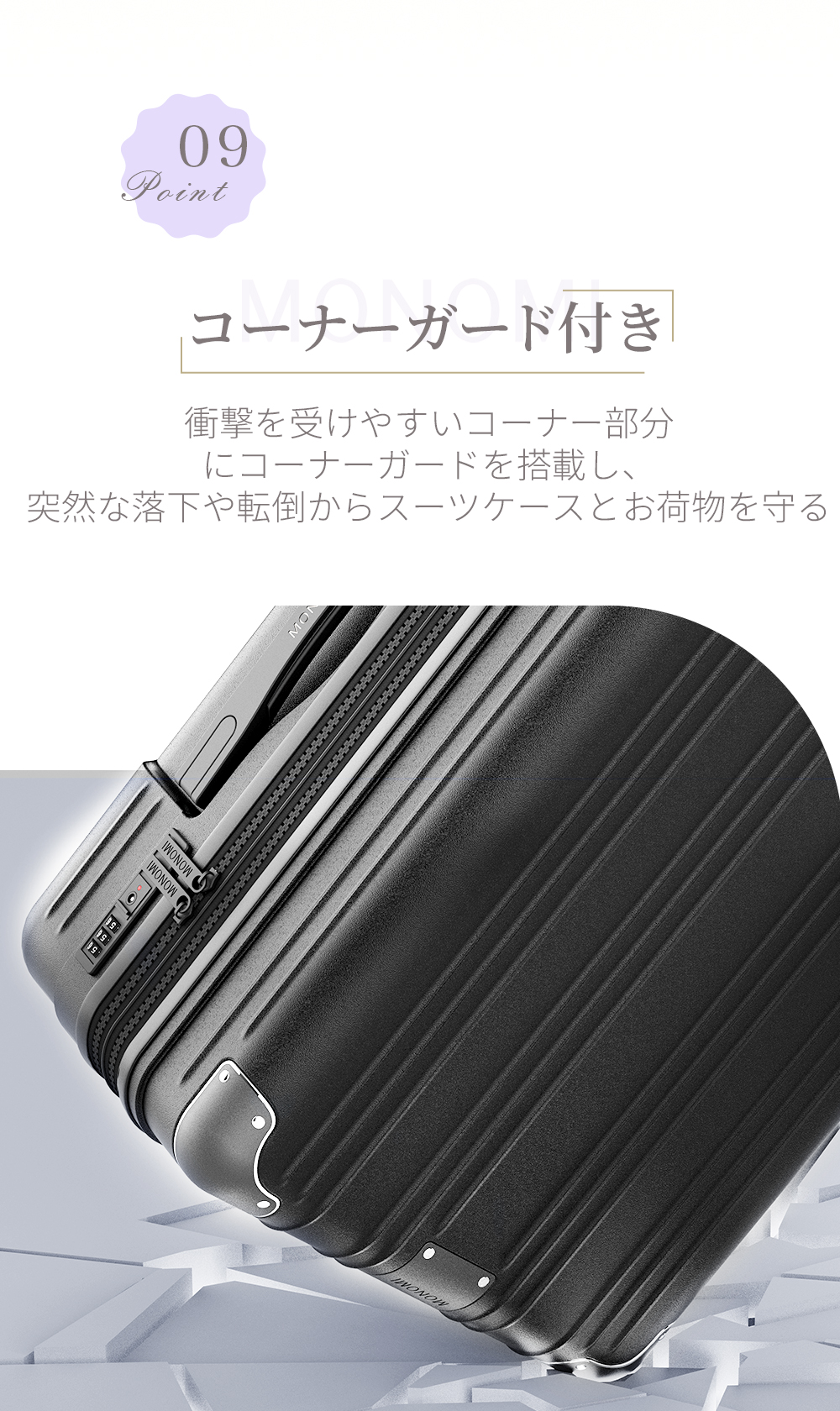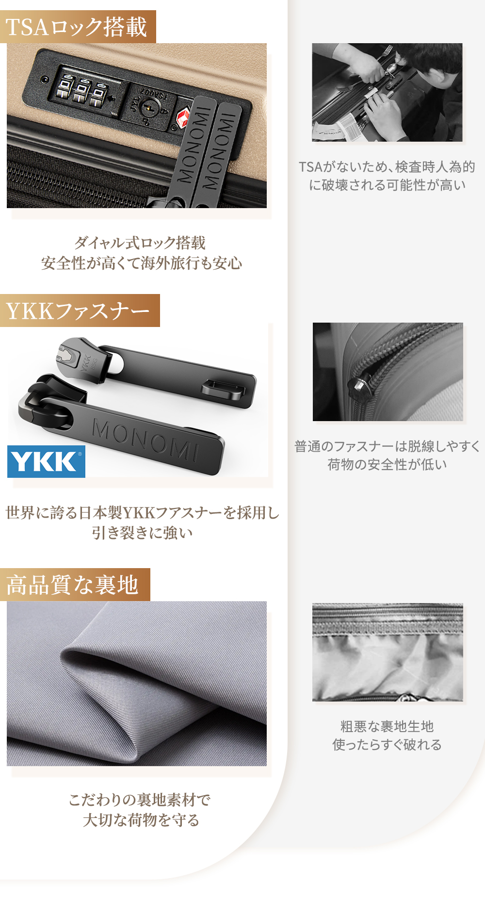 旅行に便利な『TSAロック』、安定走行の『双輪キャスター』も搭載し、拡張機能付きもっと快適な旅に