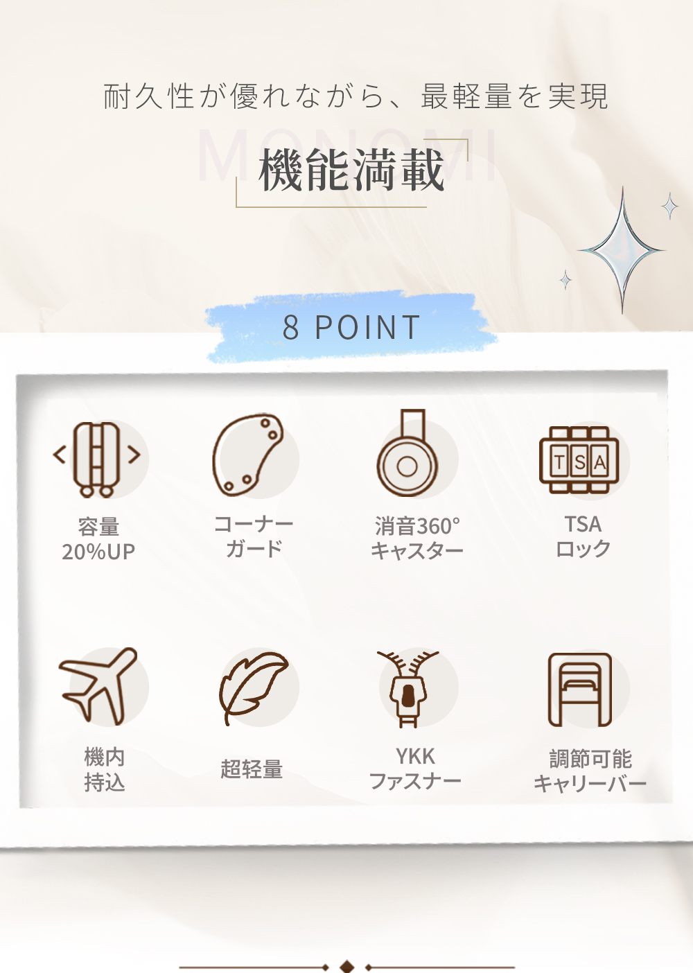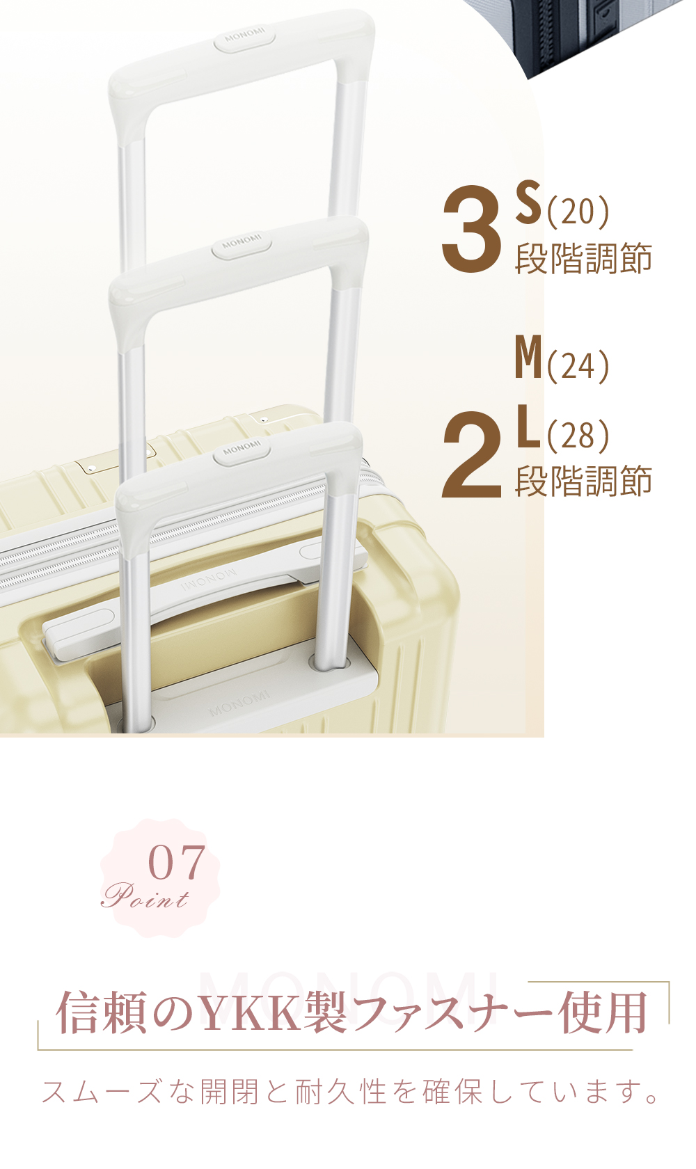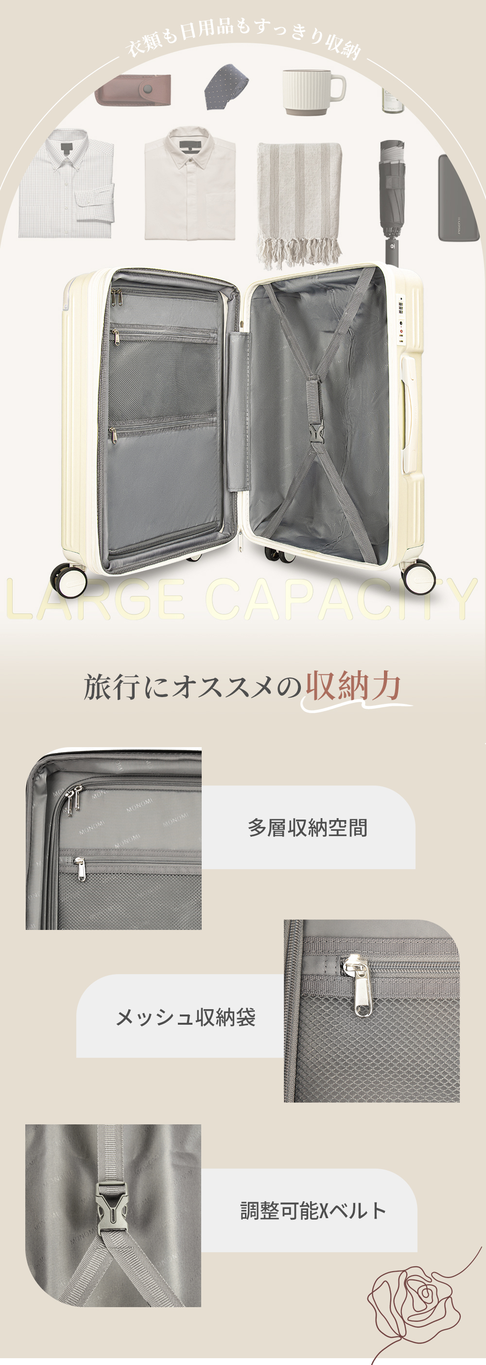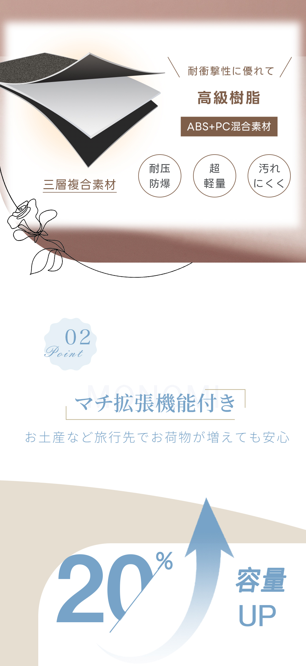 旅行に便利な『TSAロック』、安定走行の『双輪キャスター』も搭載し、拡張機能付きもっと快適な旅に