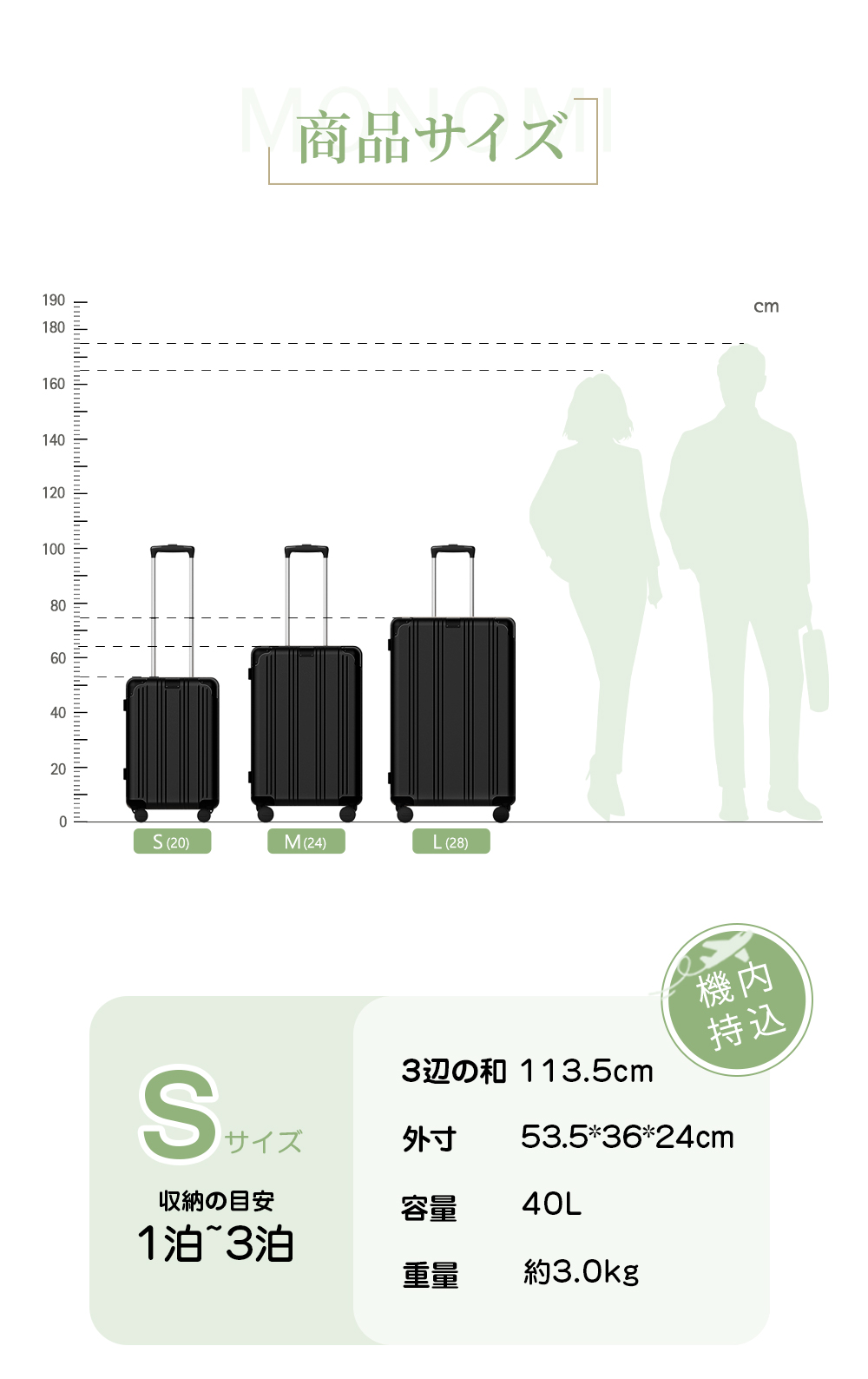 スーツケース キャリーケース 拡張機能付き 機内持ち込み キャリーバッグ 軽量 大容量 静音 S/M/Lサイズ 2泊3日 40L TSAロック 海外 修学 旅行 出張 ビジネス