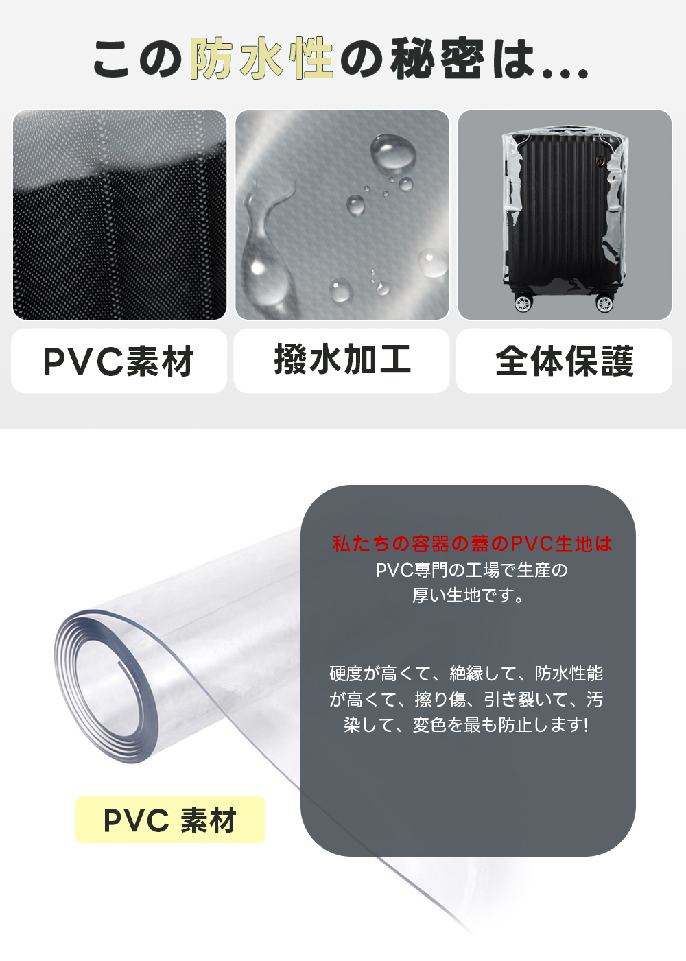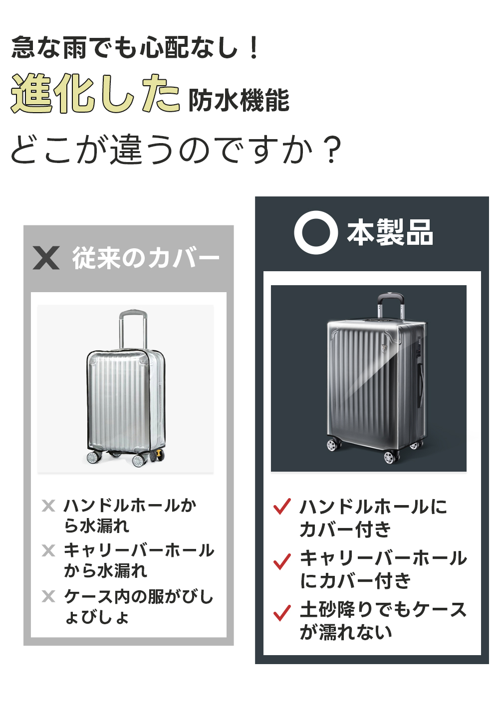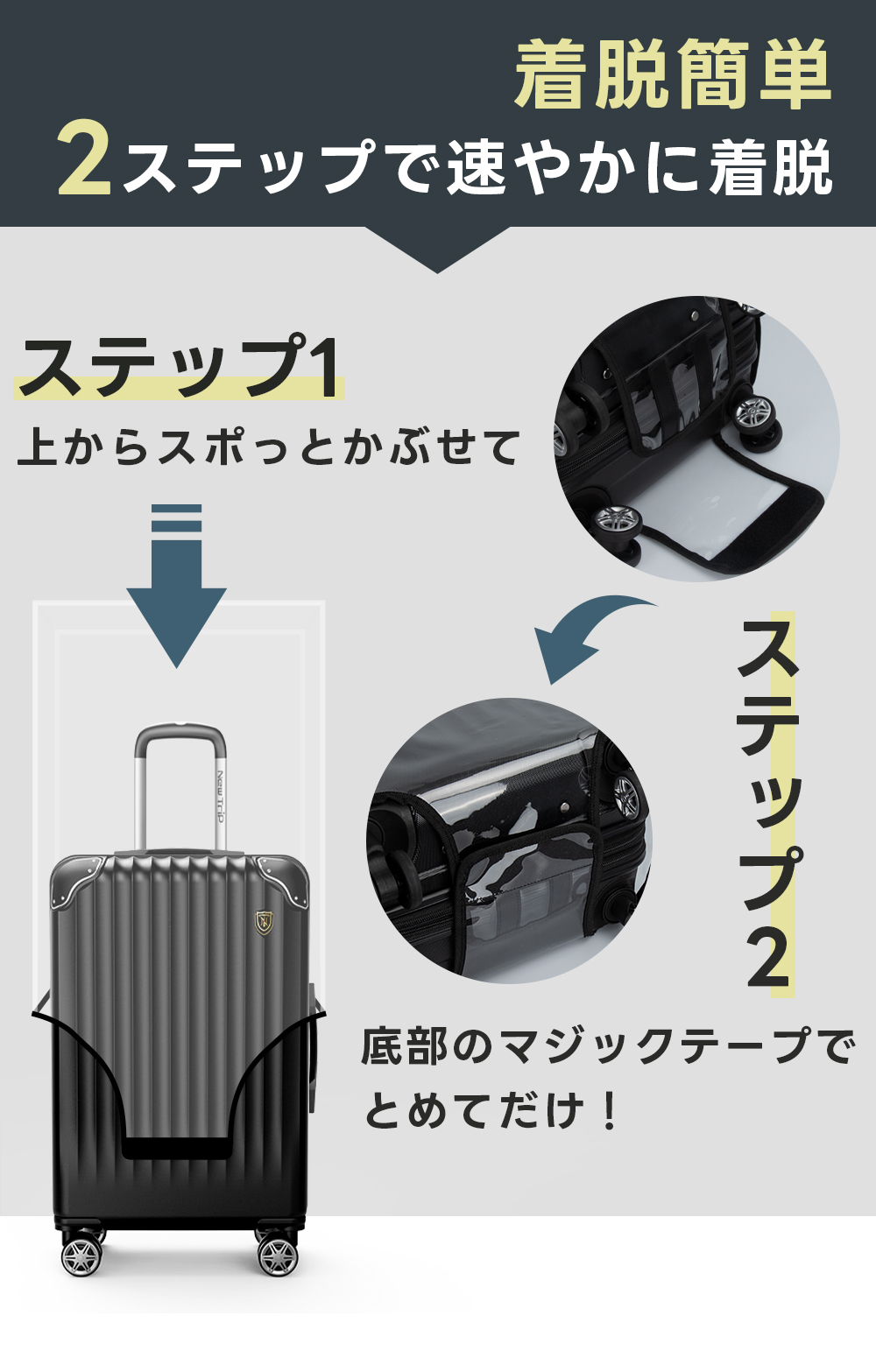 スーツケースカバー 防水 キャリーケースカバー カバー レイン ビニール 透明 梨地 マジックテープ 機内持ち込み おしゃれ かわいい S M Lサイズ 雨傷防止 旅行