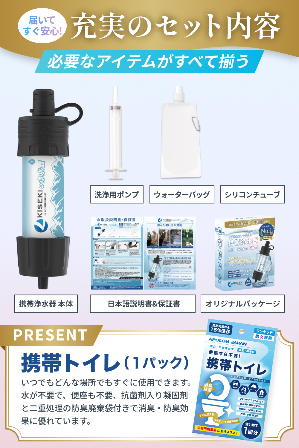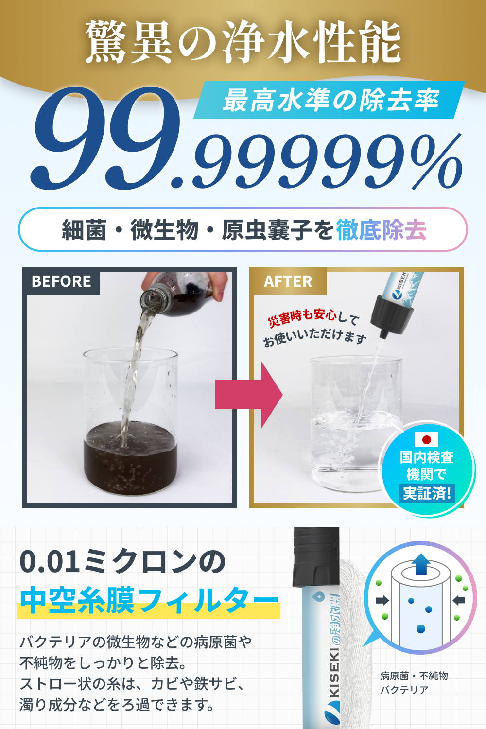 この不安を解消させるのが、KISEKIの携帯浄水器。