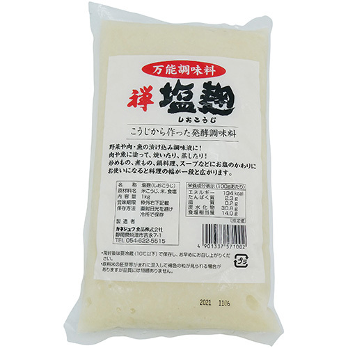 塩麹は米麹と塩のみで造られた万能調味料です。お肉、お魚、野菜、どれも相性が良く2〜3時間程度お好みの素材と塩麹を合わせて漬け込むと素材の旨味が引き立ちます。