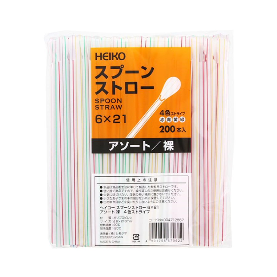 スプーン ストロー 200本 ( 4色入り / φ6×210mm )[ 1524178 ]