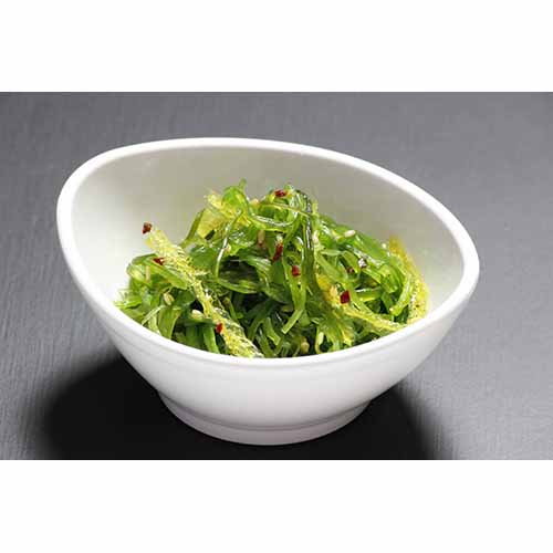 シャキシャキとした食感の良い茎わかめを香りが良いごま油とさっぱりとした酢で仕上げました。