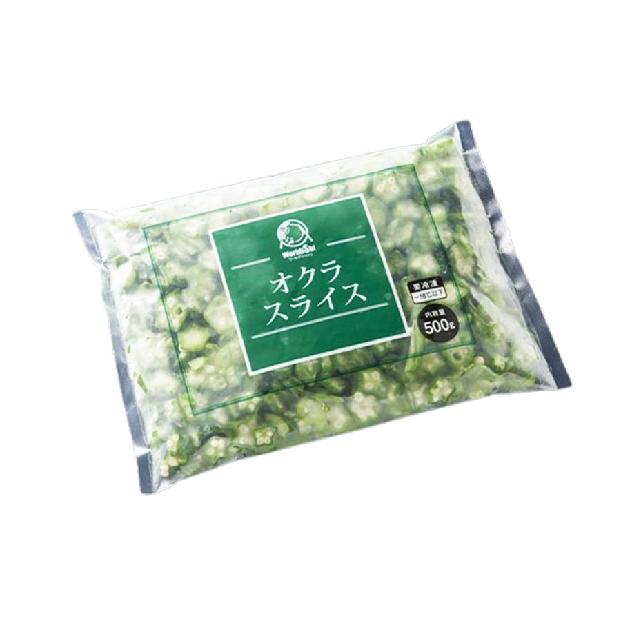 採れたてのオクラを軽く湯通しし、食べやすい大きさにカットした後、急速冷凍しました