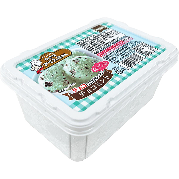 ミントの風味がしっかり楽しめるアイスに食感の異なる2種のチョコを混ぜ込んだ、こだわり仕立ての1L