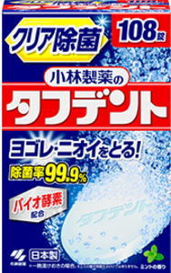 (1)150〜180mLの水またはお湯(40〜50℃)にタフデントを1錠入れる