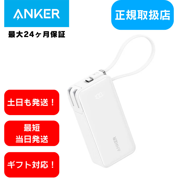 | 出力 | ・急速充電器として使用時 USB-C 出力 / USB-C 内蔵ケーブル出力 (単ポート利用時) :5V=3A / 9V=3A / 10V=2.25A / 15V=2A / 20V=1.5A (最大30W) 2ポート利用時合計最大出力:5V=3.6A (最大 18W) ・モバイルバッテリーとして使用時 USB-C 出力 / USB-C 内蔵ケーブル出力:5V=3A / 9V=3A / 10V=2.25A / 15V=2A / 20V=1.5A (最大 30W) 2ポート利用時合計最大出力:5V=3A (最大 15W) |