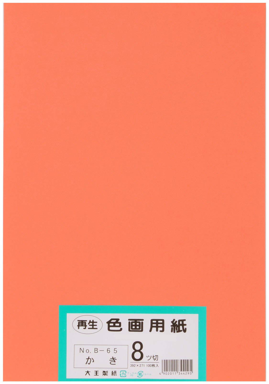 大王製紙 画用紙 再生 色画用紙 八ツ切サイズ 100枚入 かき(柿)