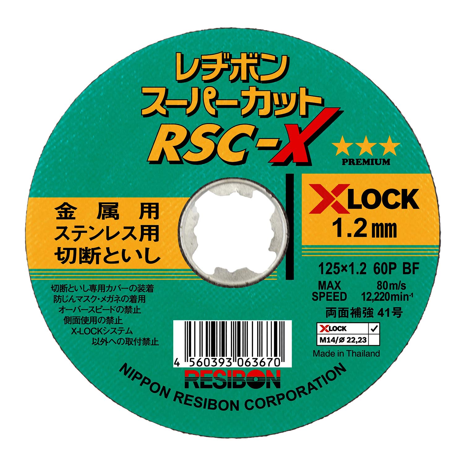 商品名:レヂボン 金属・ステンレス用切断砥石 スーパーカットRSC-X 1枚 125×1.2mm 60P