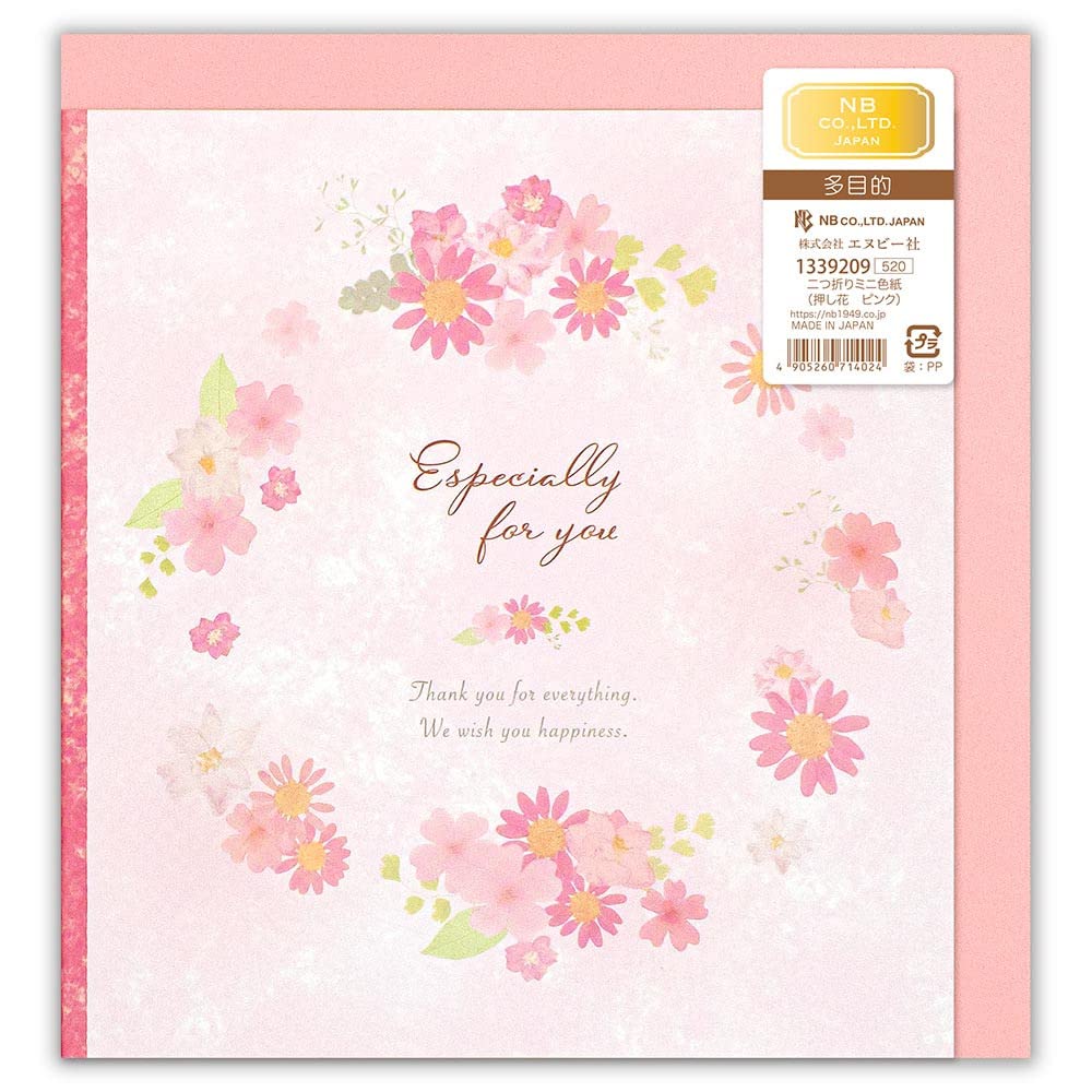 エヌビー社 二つ折り ミニ色紙 押し花 ピンク | 寄せ書き ミニサイズの色紙 封筒付