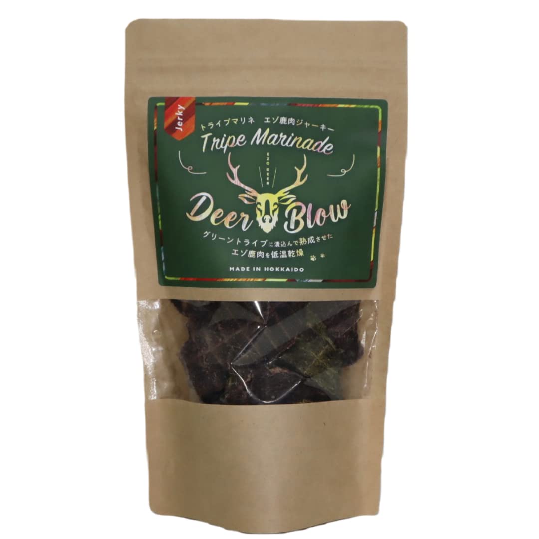 北海道だけに生息している天然エゾ鹿肉を使用した犬用ジャーキーです。 エゾ鹿肉は、安定的な供給が難しい貴重なタンパク源で、低アレルギー、低カロリー、低脂肪なうえ、タンパク質が非常に豊富なヘルシーな食材です。 理想的な栄養が豊富なエゾ鹿肉ですが、さらに独自の製法で「エゾ鹿トライプ(胃内容物)」を三日間マリネし、旨味や栄養を大幅に変化させることで、まったく新しいジャーキーに進化しました。 低温乾燥で、手で割りやすく与えやすいサクサク食感!食欲を誘う芳醇な香りを実現しました。