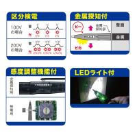 仕様:直接検電(区分検電)・被覆検電(交流/低圧用)・金属探知(感度調整機能付)