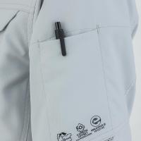 ●日本製ストレッチ素材(再生PET繊維100%)<br> ●転写プリント(BOTTLE TECH、カーボンオフセット、エコマーク)<br> ●製品制電(JIS T 8118)<br> ●野帳も入る縦ファスナーポケット<br> ●両袖、両脇マルチポケット<br> ●両袖、背中反射材付き<br> ●タブレットも入る内ポケット<br> ●サイドベンツアジャスター