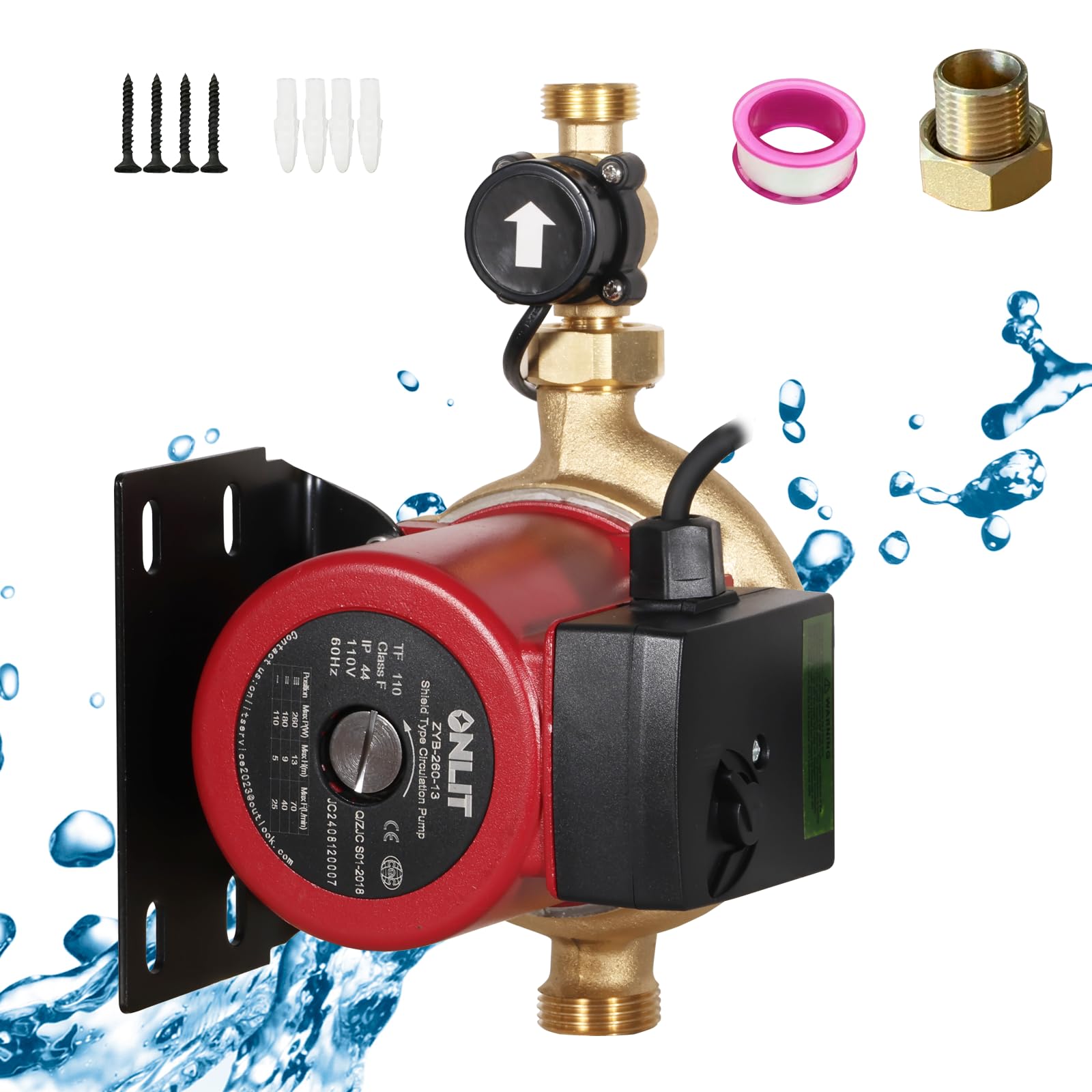 商品名:Onlit 全自動ブースターポンプ 給湯加圧ポンプ 最大流量70L/min 最大揚高13m 流量調整可能 高圧シャワーウォーターポンプ 適用水温2-110℃ 壁に取り付け可能 低騒音 錆ない 水道水加圧 給湯器加圧 外部スイッチ付き 日本語取扱説明書付き (銅製コネクター)