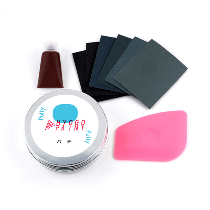 厚付けパテ・硬化剤 補修キット (パテ主剤100g 硬化剤2g ヘラ 耐水ペーパー6種各1枚) カラー番号 補修用品 塗料 補修塗料