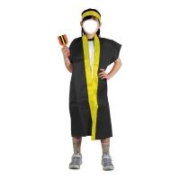 品名 : サテンロングハッピ黒(黄襟)S(ハチマキ付)