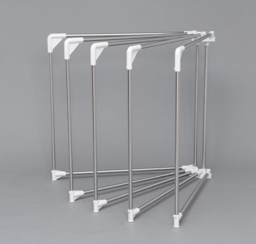 丈夫でサビにくいΦ25mmのステンレスパイプ仕様のふとん干しです。倒れにくい形状なので、安定感抜群でしっかり干すことができます。角が丸く布団が掛けやすいデザインです。使用しない時はコンパクトに折りたたんで収納できます。
