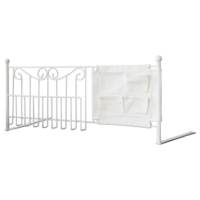 ラックとポケットが付いている便利なデザイン。雑誌や新聞はラックに、携帯電話やリモコンなどの小物はポケットに、そばに置いておきたい物の収納ができます。