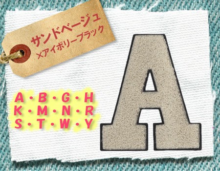 アルファベットパイルワッペン ・ 大サンドベージュ×アイボリーブラック ・ サガラ刺繍 文字ワッペン 縫い付けタイプ