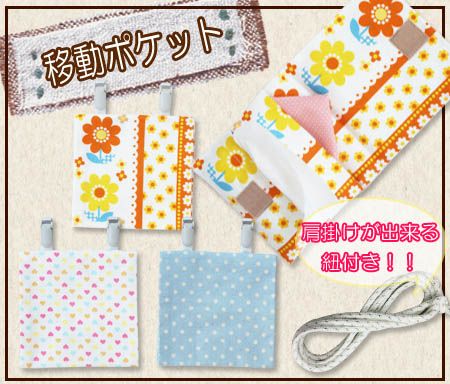 2way移動ポケット 花柄・ハートドット・水色ドット ・ ポケットティッシュケース ミニポーチ かわいい 便利 ネコポス対応