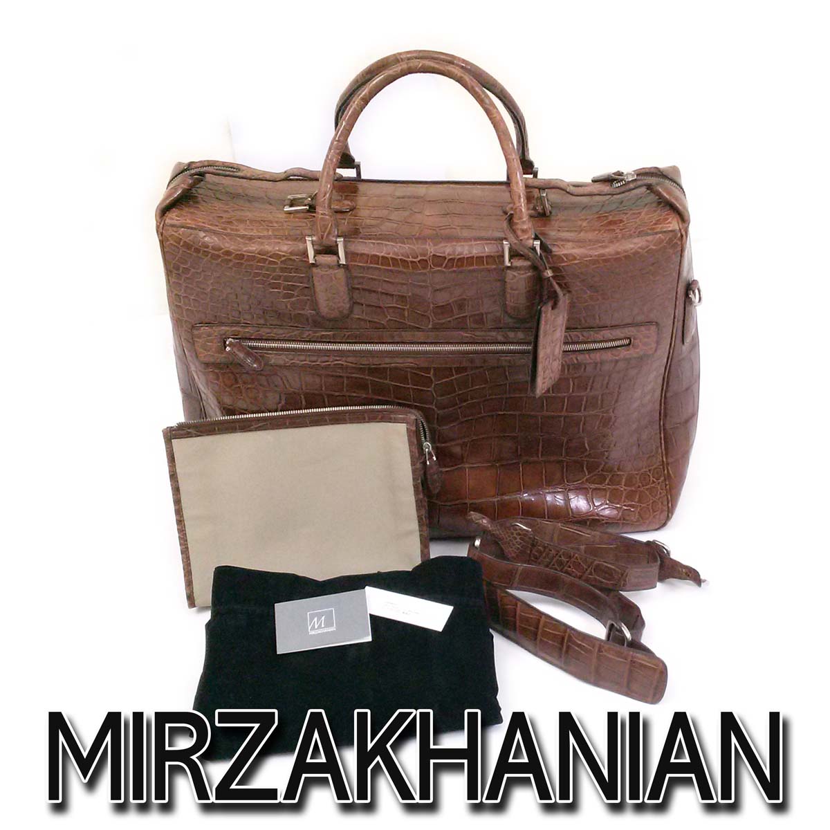 商品名 ・・・・【美品】ガーメントケース クロコダイル MIRZAKHANIAN Garment Bag Crocodile マットクロコ 茶 定価253万円 ショルダーベルト付き スーツ衣装バッグ 取り外し可能ポーチ 保存袋 ap9781【一撃即決】