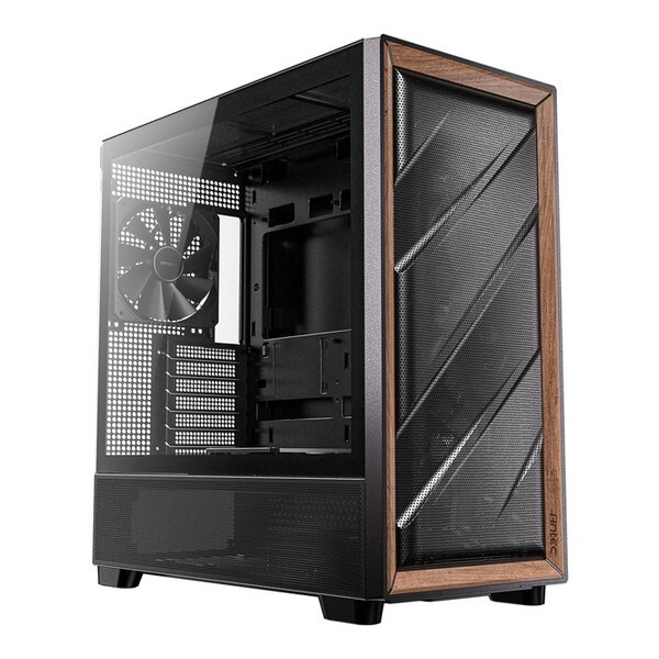 冷却力を追求する独自プラットフォーム「FLUX」に基づき、フロントファン3基による余裕のあるエアフローがシステム部分と独立式のPSU/HDDチャンバーを冷却し熱のこもりを解消、サイドの強化ガラスパネルは表面にネジ穴を設けないことで美観と耐久性を両立します。