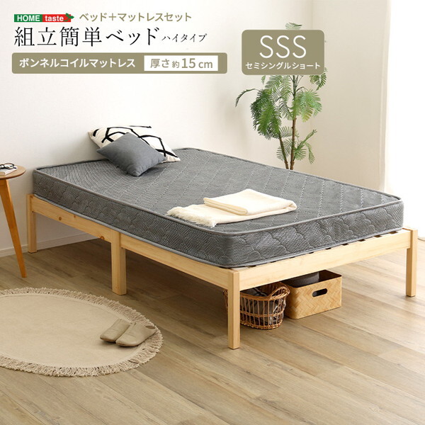★ 2分で完成!組立簡単ベッド、ハイタイプ、ボンネルコイルマットレスセット!