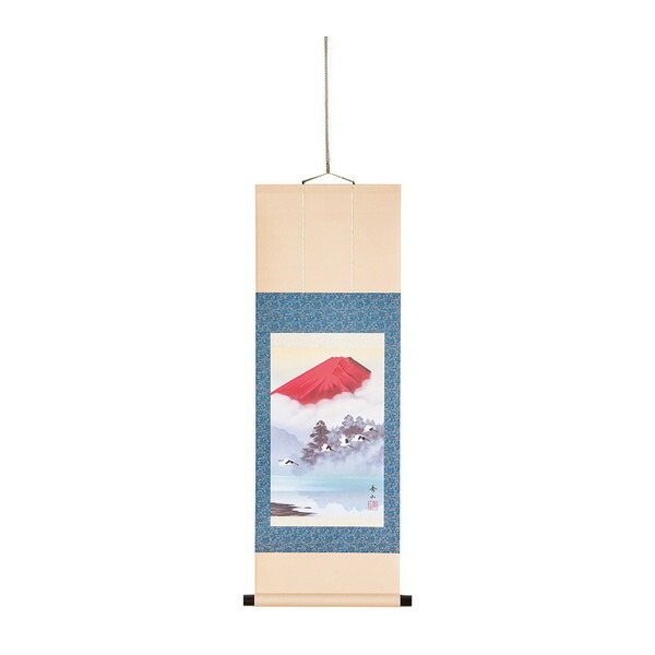 ★ 陽光を浴び赤々と染まる霊峰富士を背に、群鶴が悠然と飛ぶ姿を描いた心安らぐ構図。鶴は長寿、富士は出世、繁栄を招き、特に赤富士には絶大な開運力があり、金運を高めると言われています。* サイズ:89.5×36cm* 材質:[表装]洛彩緞子、[本紙]新絹本、[軸]樹脂* 本体重量:約180g* 原産国:日本