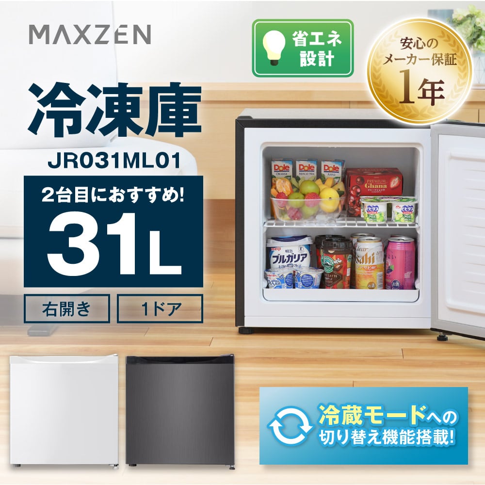 期間限定ポイント5倍! 冷凍庫 小型 家庭用 31L MAXZEN コンパクト 右開き フリーザー ストッカー ストック キッチン家電 ガンメタリック JR031ML01GM 新生活