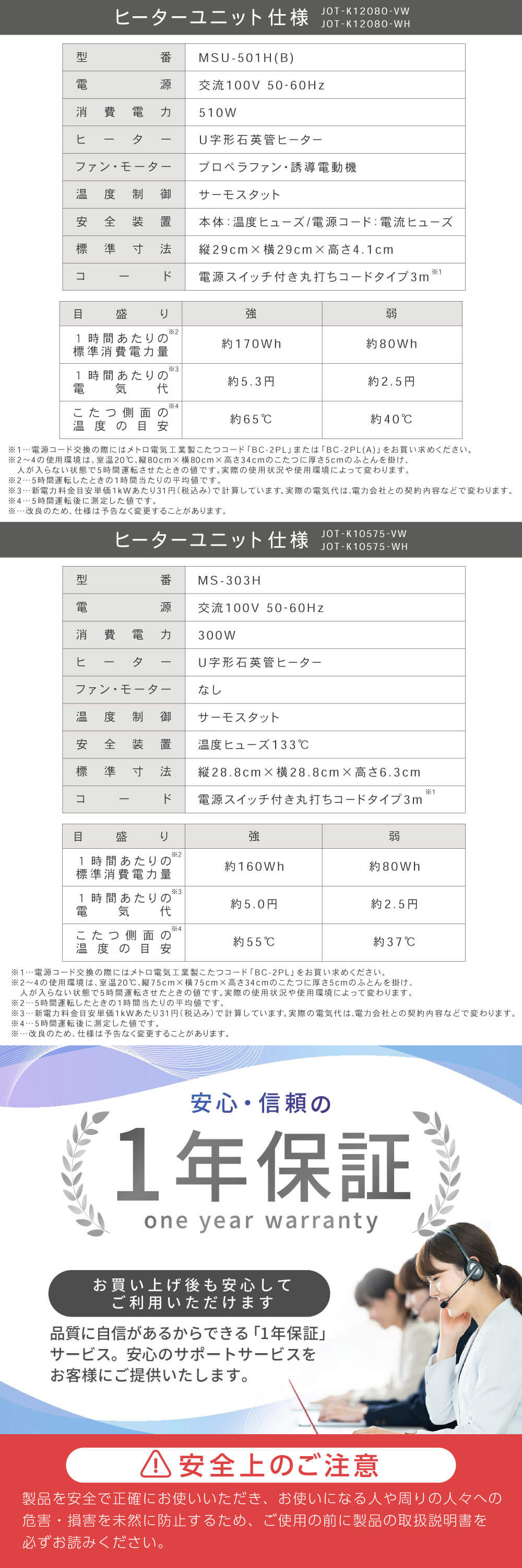 ※1…電源コード交換の際にはメトロ電気工業製こたつコード「BC-2PL」または「BC-2PL(A)」をお買い求めください。