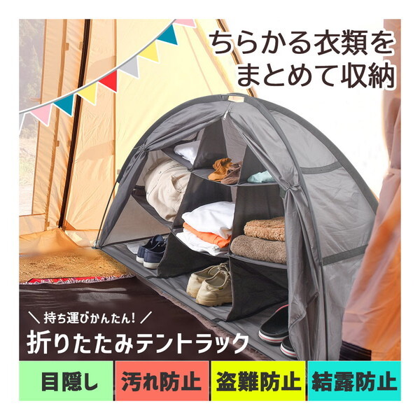 人数分の服や靴の荷物置き場に最適な、テントタイプの収納棚「テントラック」。