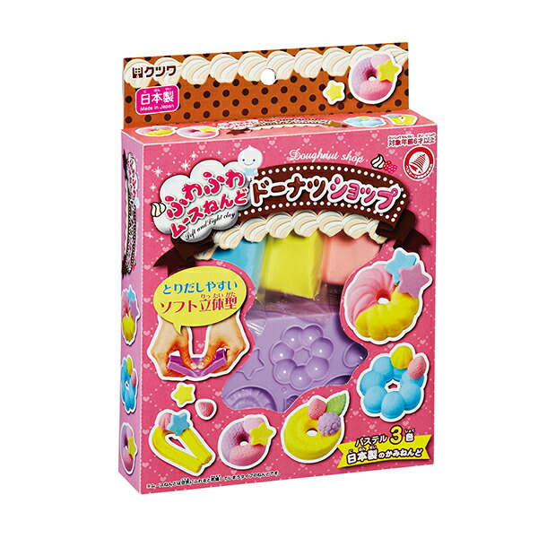 ★ やわらかくて取り出しやすいソフトねんど型付のミニキット!ふわふわできめが細かく、軽い紙粘土でかわいい5種類のドーナツが作れます* 材質…ねんど:有機微小中空球体、パルプ繊維、粘結剤、保存剤、水、色素、ソフト立体型:PE、説明書:紙* サイズ(mm):53×43×18* 重量(g):22