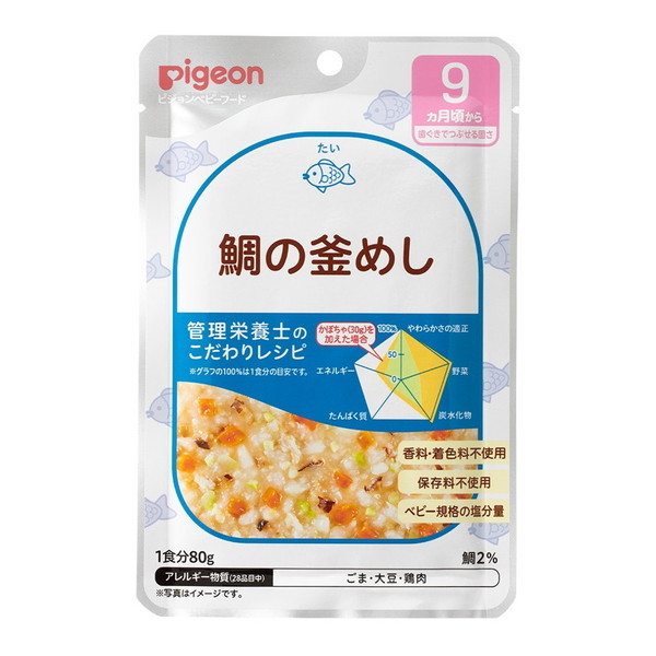 * 原材料:野菜(たまねぎ、にんじん、えだまめ(大豆を含む)、キャベツ)、精白米(国産)、鯛、しいたけ水煮、オイスターエキス、チキンエキス、食塩、ごま油/増粘剤(加工でん粉)
