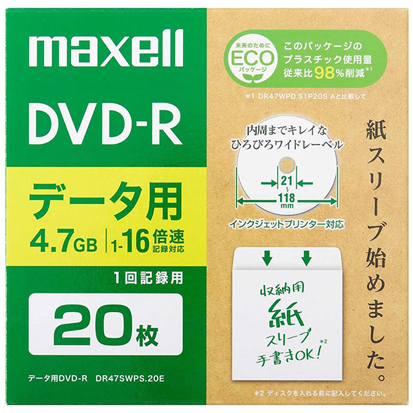 maxell DR47SWPS.20E データ用DVD-R(紙スリーブ) 4.7GB 20枚