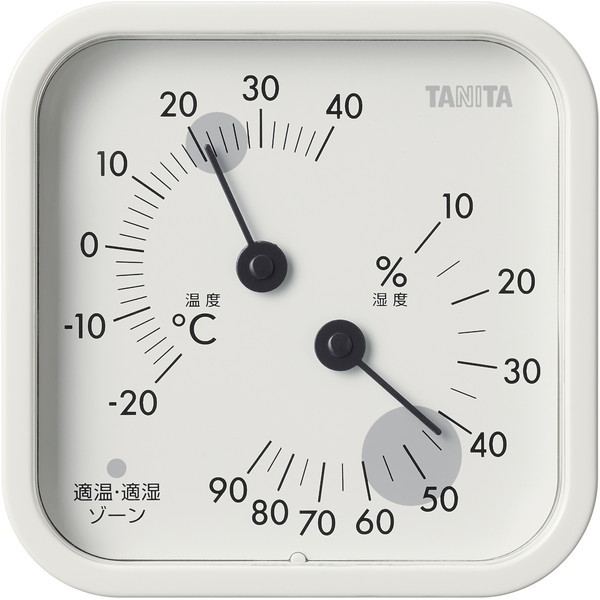 ★ おうちの環境を適温★ 適湿ゾーンで確認できるアナログ温湿度計★ インテリアに馴染むおしゃれなカラー★ コンパクト設計でマグネット、フック穴付き* 商品寸法:約 幅75×高さ75×奥行30mm* 本体重量:約 70g* 測定範囲(温度/湿度):-20〜40℃/10〜90%* 測定精度(温度/湿度):-20〜40℃ ±2℃/35〜75% ±5% それ以外±10%* 最小表示(温度/湿度):2℃単位/5%単位* 主な材質:ABS、PMMA* マグネット、フック穴付き