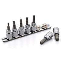 ★ 付属のソケットホルダーは両端にビス穴付き。工具箱などに取付可能。★ 材質はクロームバナジウム鋼。★ ソケット差し込み部はクロームメッキ仕上げ。【スペック】* 六角サイズ:9/64、5/32、3/16、7/32、1/4、5/16、3/8インチ。* 差し込み:3/8インチ(9.5mm)角