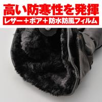 ★ ツヤ感のあるしっとりとした牛革を全面に使用。★ レザーと防風防水透湿フィルムによる防風性に、裏地ボアを組み合わせることで高い防寒性を発揮。★ 指先のパッチとナックルダイヤモンドステッチにより高級感のあるクラシカルな雰囲気グローブです。※ タッチパネル対応はグローブへの密着度や個人差により感度にばらつきがあります。※ 経年劣化や使用状況により防水フィルムが破損することがあります。* シーズン:秋冬* タッチパネル対応