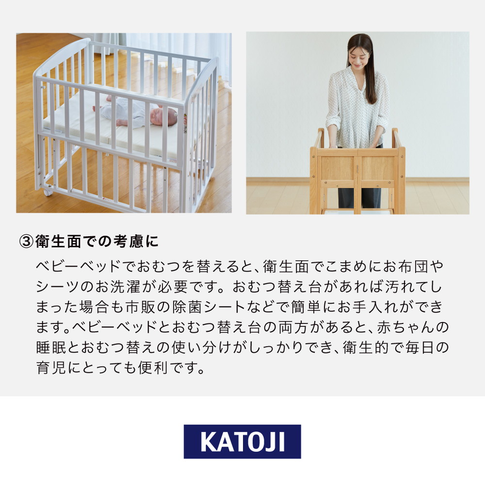 ★ 折りたためるおむつ替え台。収納、お部屋の移動の際に便利な機能です。