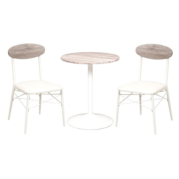 ★ おしゃれカフェのようなダイニングセット。★ 気軽に置きやすいコンパクトサイズです。* サイズ: テーブル:(約)60×高さ70cm チェア:(約)幅45×奥行50×高さ76×座面高42cm* 主材: フレーム:スチール 天板・背:合成樹脂化粧繊維板 張地:合成皮革 クッション材:ウレタンフォーム