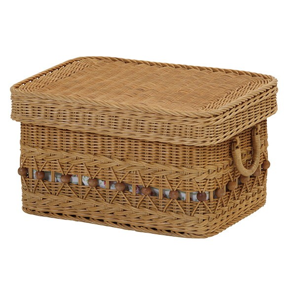 ★ フタ付きでスタッキングできる、かわいらしいラタン製バスケット。