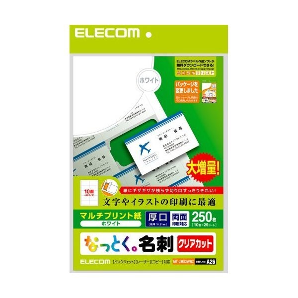 名刺用紙 ELECOM エレコム MT-JMK2WNZ なっとく名刺 マルチプリント専用紙 厚口 ホワイト 大増量250枚入り