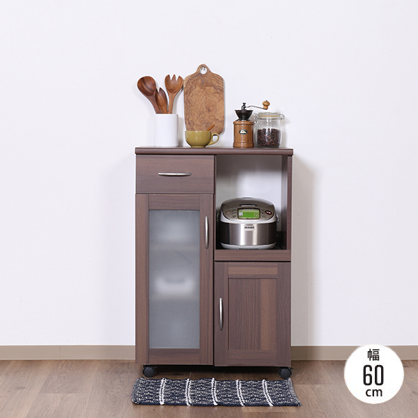 ★ トレーは引き出すことができ、コンセント付きなのでレンジや炊飯器の収納にピッタリ
